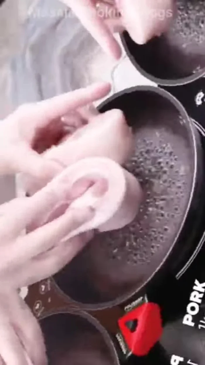 - Add 1 kg of pork to boiling water, cover, and cook for 7 minutes (Method 1).