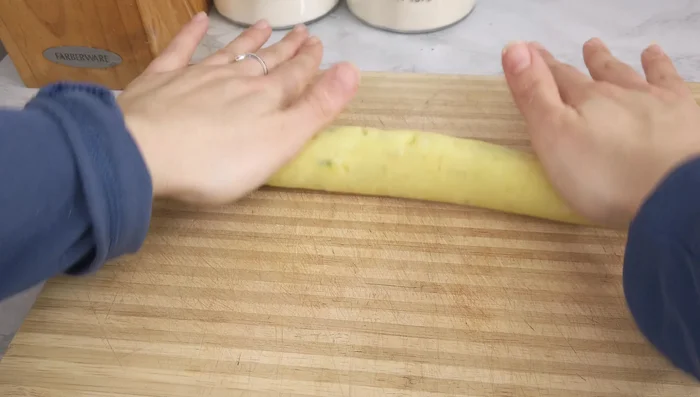 - Roll out the potato dough and cut into croquette shapes. Optionally, stuff with mozzarella cheese.
